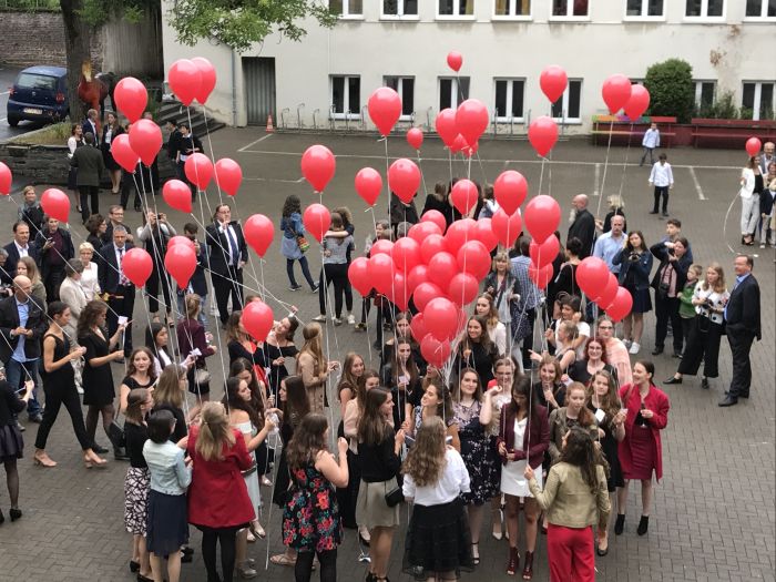 Zum Ende der Abiturfeier ließen die Abiturientinnen rote Ballons in den Himmel aufsteigen (Film). Wir wünschen allen Abiturientinnen des Jahres 2017 alles Gute und Gottes Segen.