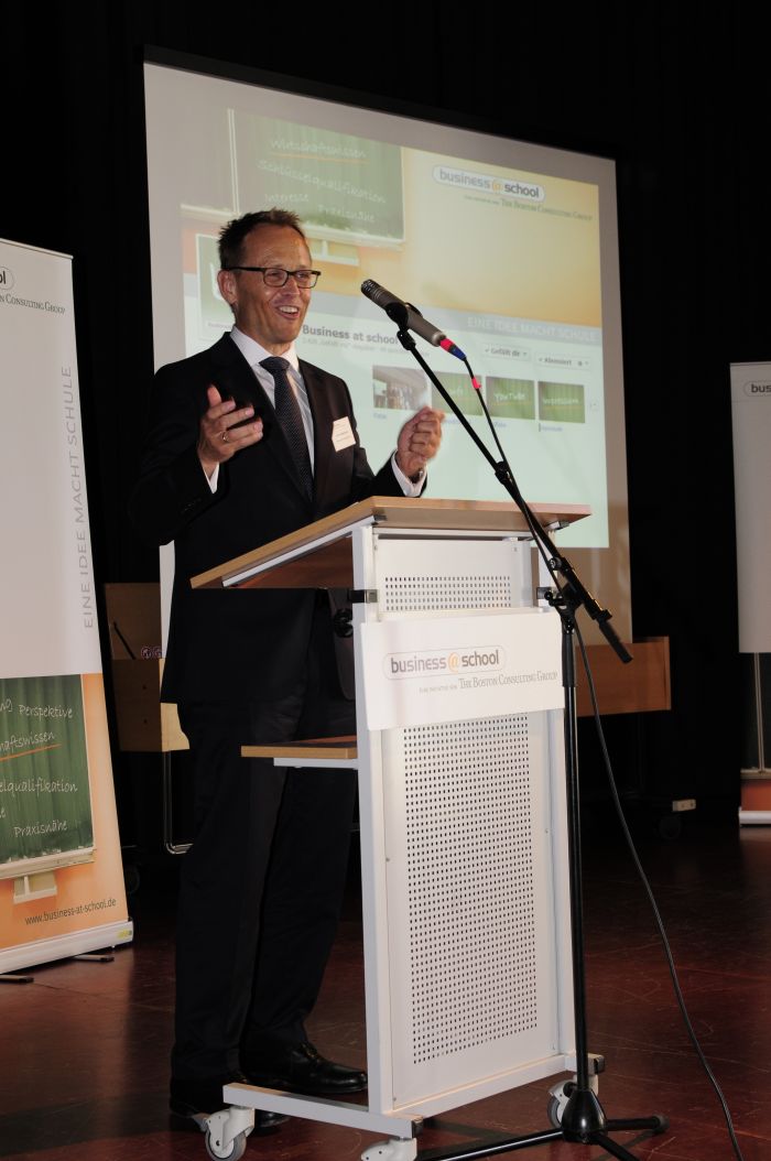 Seit 10 Jahren nimmt unsere Schule nun ununterbrochen am Projekt business@school teil. Aus diesem Anlass fand der diesjährige Regionalentscheid NRW-Nord am 12. Juni 2014 in unserem Hause statt. Und das "Tüpfelchen auf dem i" ist der tolle Sieg unseres Teams: Hajer Kerkeni, Sarah Jacobs, Smilla Och, Rika Thesing und Eva Schepers. Am 30. Juni ist der überregionale Entscheid in München. Herzlichen Glückwunsch!