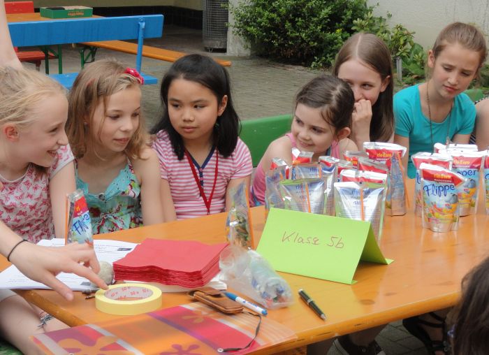 Währenddessen hatten auch die Eltern Gelegenheit, sich kennen zu lernen und  in lockerer Atmosphäre mit der Schulleitung und den Klassenlehrerinnen ins Gespräch zu kommen. Herzlichen Dank an den Verein der Freunde und Förderer, für den Frau Fraenz, Frau Trippen und Herr Dr. Stein an diesem Nachmittag wieder das Eltern-Café angeboten haben.