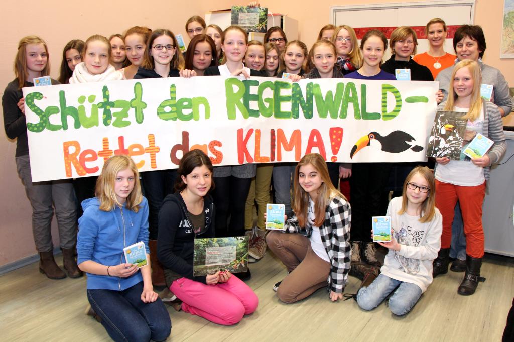 Im Rahmen des Unterrichtes in der Jahrgangsstufe 7 werden die Besonderheiten der verschiedenen Klimazonen besprochen. Der tropische Regenwald ist für die Schülerinnen immer sehr ansprechend und faszinierend. Im Rahmen dieser Unterrichtsreihe setzten sich die Schülerinnen auch mit der Auswirkung der Abholzung der tropischen Regenwälder für das Klima der Erde und die dadurch verursachte globale Erwärmung auseinander.