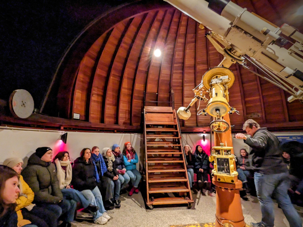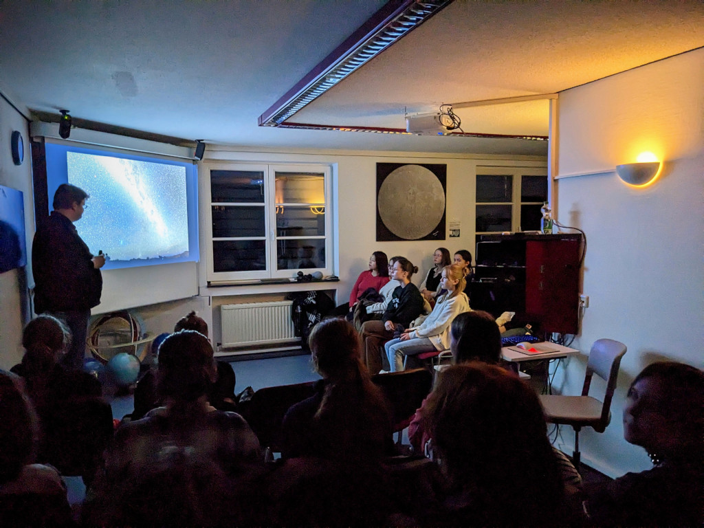 Vorher kamen die Schülerinnen mit Matthias von der Sternwarte noch über Astrofotografie, Astrophysik und Kosmologie ins Gespräch.